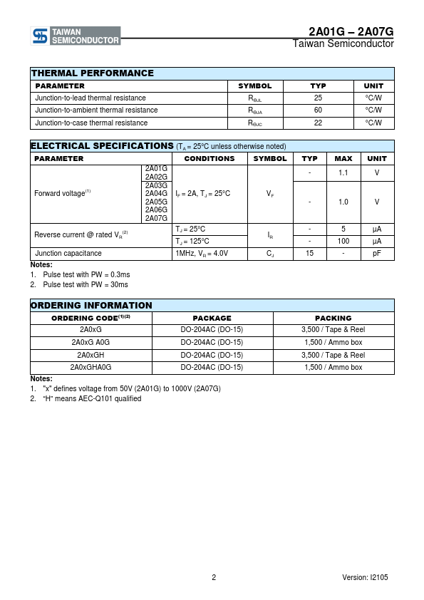 - This datasheet PDF includes multiple part numbers: 2A05G, 2A01G.