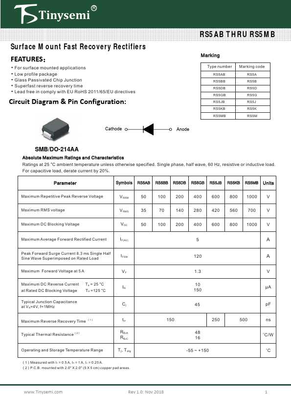 - This datasheet PDF includes multiple part numbers: RS5GB, RS5AB.