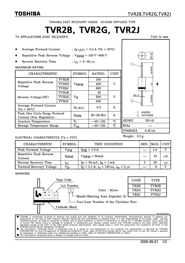 - This datasheet PDF includes multiple part numbers: TVR2G, TVR2B.