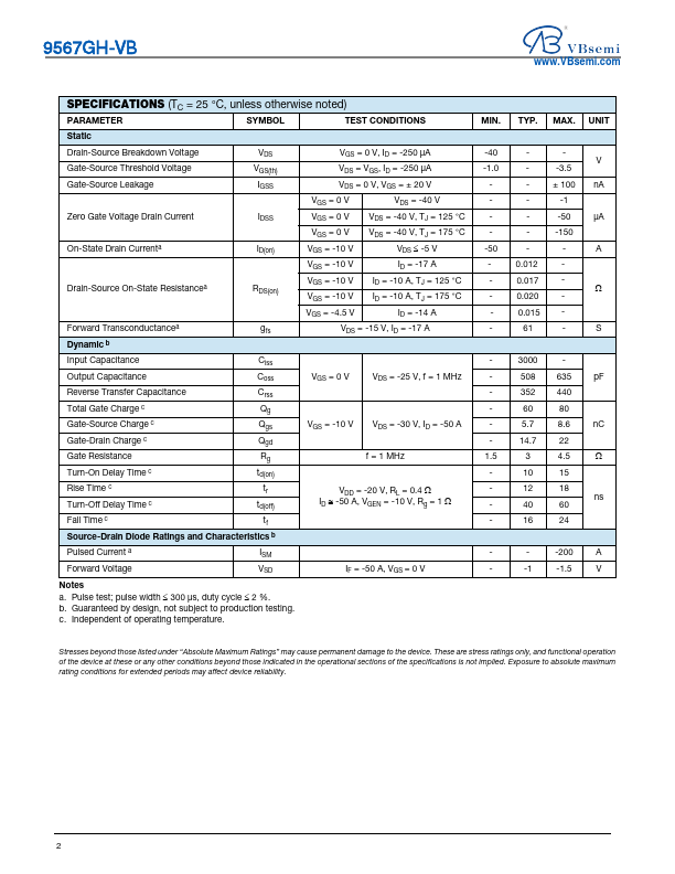 The 9567GH by VBsemi is a P-Channel 40V MOSFET. Below is the official datasheet preview.