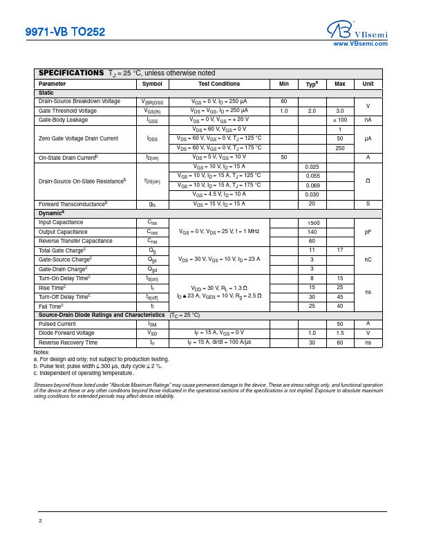 The 9971 by VBsemi is a N-Channel 60V MOSFET. Below is the official datasheet preview.