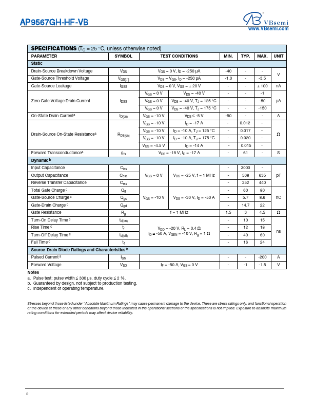 The AP9567GH-HF by VBsemi is a P-Channel 40V MOSFET. Below is the official datasheet preview.