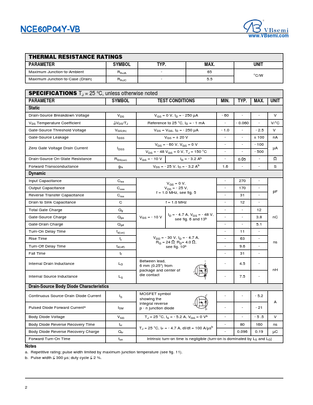 - NCE60P25K - P-Channel Enhancement Mode Power MOSFET (NCE Power Semiconductor)