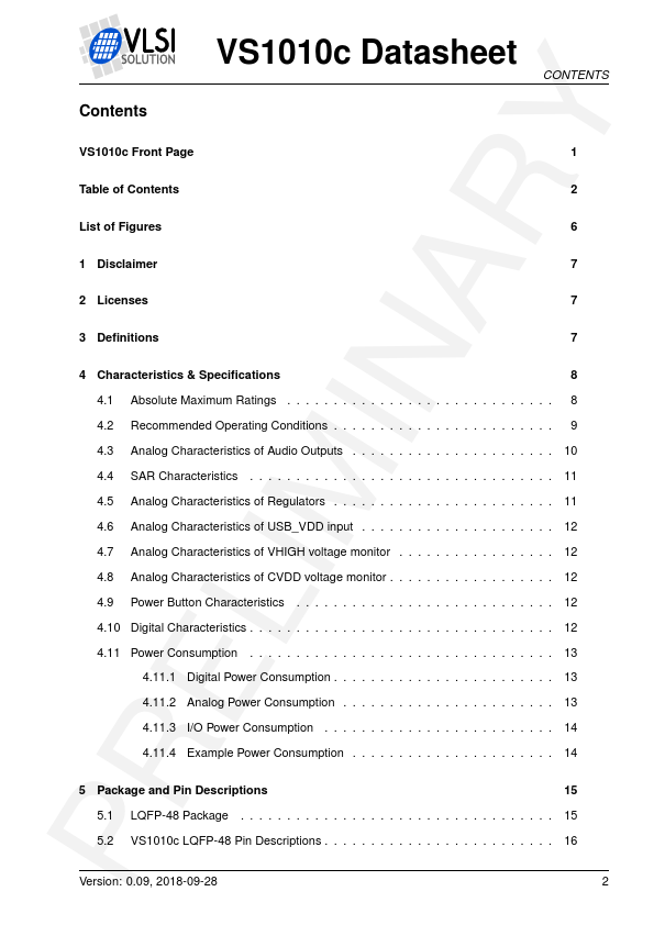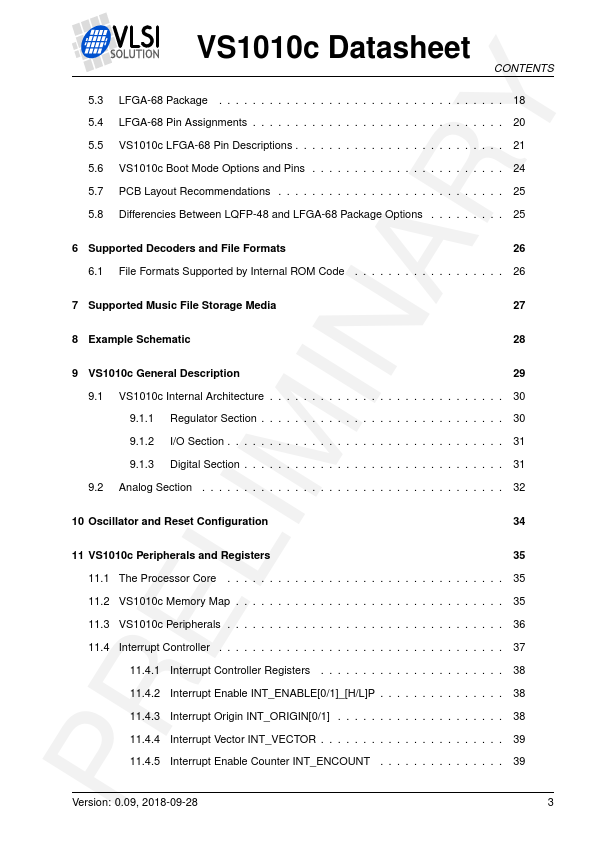 15 5.1 LQFP-48 Package . 16 Version: 0.09, 2018-09-28 2 PRELIMINARY VS1010c Datasheet CONTENTS 5.3 LFGA-68 Package . 20 5.5 VS1010c LFGA-68 Pin Descriptions