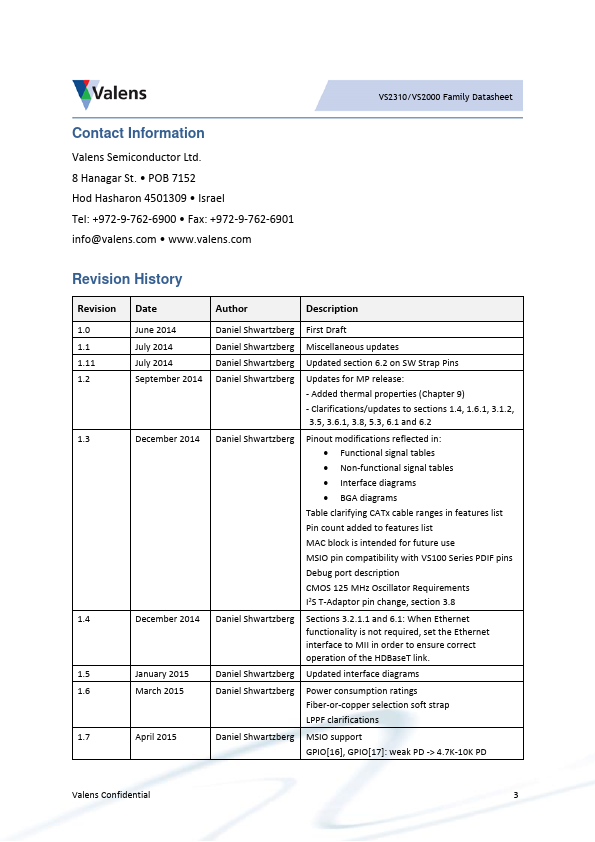 June 2014 July 2014 July 2014 September 2014 December 2014 December 2014 January 2015 March 2015 April 2015 Daniel Shwartzberg Daniel Shwartzberg Daniel Shwartzberg Daniel Shwartzberg Daniel Shwartzberg Daniel Shwartzberg Daniel Shwartzberg Daniel Shwartzberg Daniel Shwartzberg First Draft Miscellaneous updates Updated section 6.2 on SW Strap Pins Updates for MP release: - Added thermal properties (Chapter 9) - Clarifications/updates to sections 1.4, 1.6.1, 3.1.2, 3.5, 3.6.1, 3.8, 5.3, 6.1 an