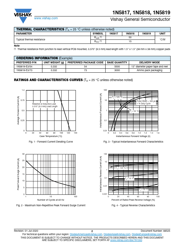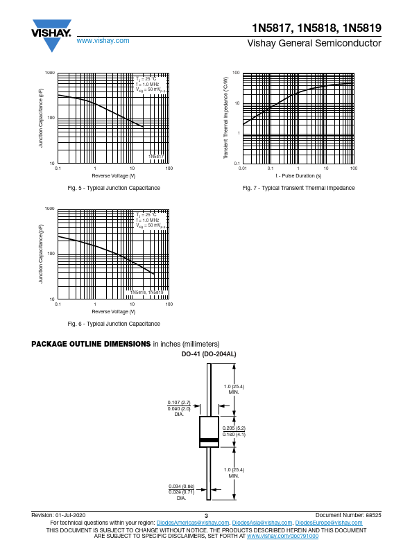 www.vishay.com 1N5817, 1N5818, 1N5819 Vishay General Semiconductor Schottky Barrier Plastic Rectifier DO-41 (DO-204AL) PRIMARY CHARACTERISTICS IF.