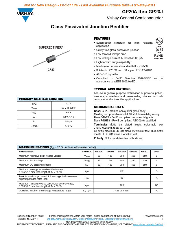 - This datasheet PDF includes multiple part numbers: GP20J, GP20A.