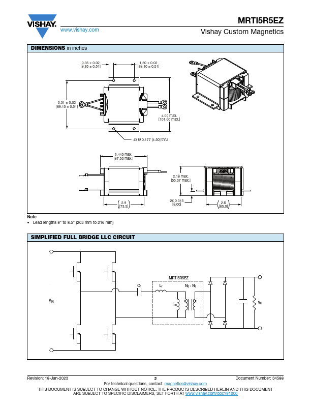 Datasheet Details Part number MRTI5R5EZ Manufacturer Vishay ↗ File Size 100.48 KB Datasheet MRTI5R5EZ-Vishay.pdf Description Integrated LLC Transformer / Inductor