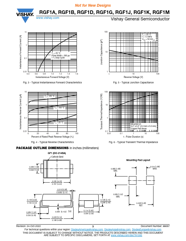Not for New Designs RGF1A, RGF1B, RGF1D, RGF1G, RGF1J, RGF1K, RGF1M www.vishay.com Vishay General Semiconductor Surface-Mount Glass Passivated Jun.Features