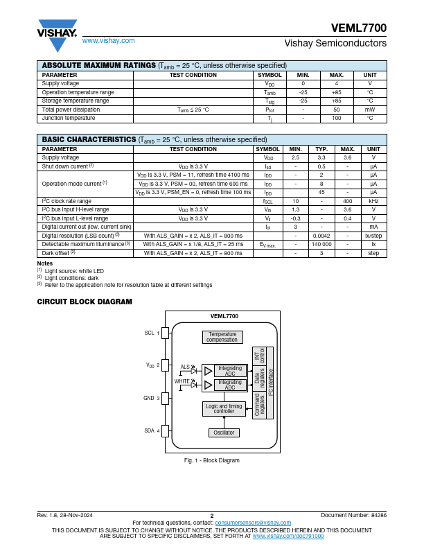 | Part number | VEML7700 |