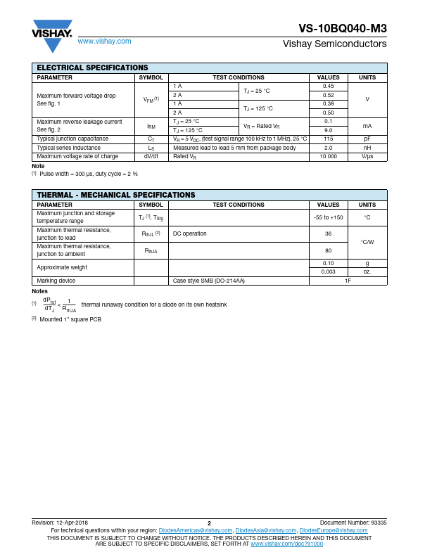 | Part number | VS-10BQ040-M3 |