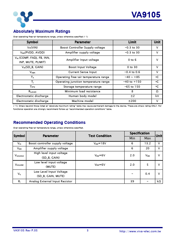 | Part number | VA9105 |