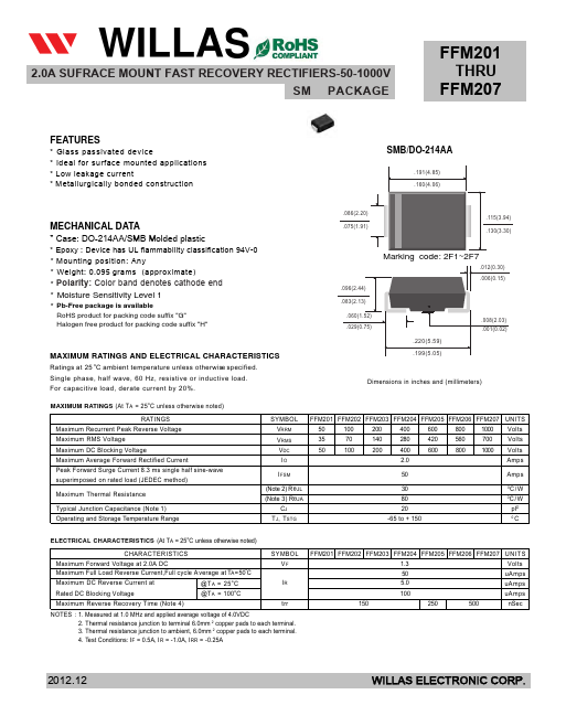 - 2.0A SUFRACE MOUNT FAST RECOVERY RECTIFIERS