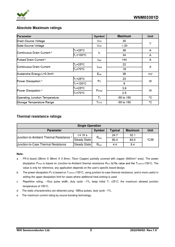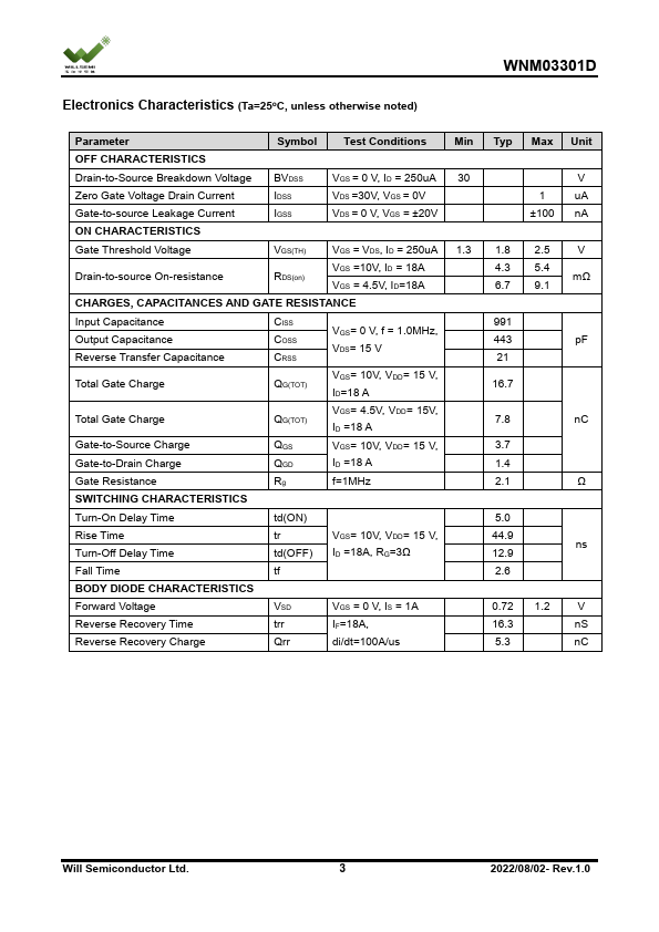 The WNM03301D is N-Channel enhancement MOS Field Effect Transistor.