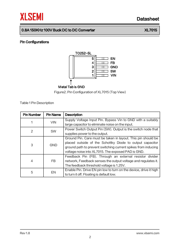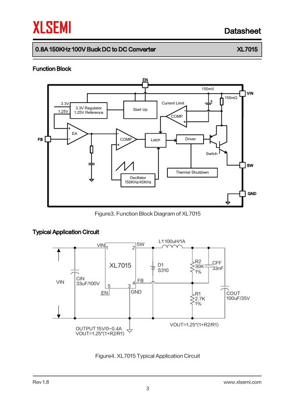 The XL7015 is a 150KHz fixed frequency PWM buck (step-down) DC/DC converter, capable of driving a 0.8A load with high efficiency, low ripple and excellent line and load regulation.