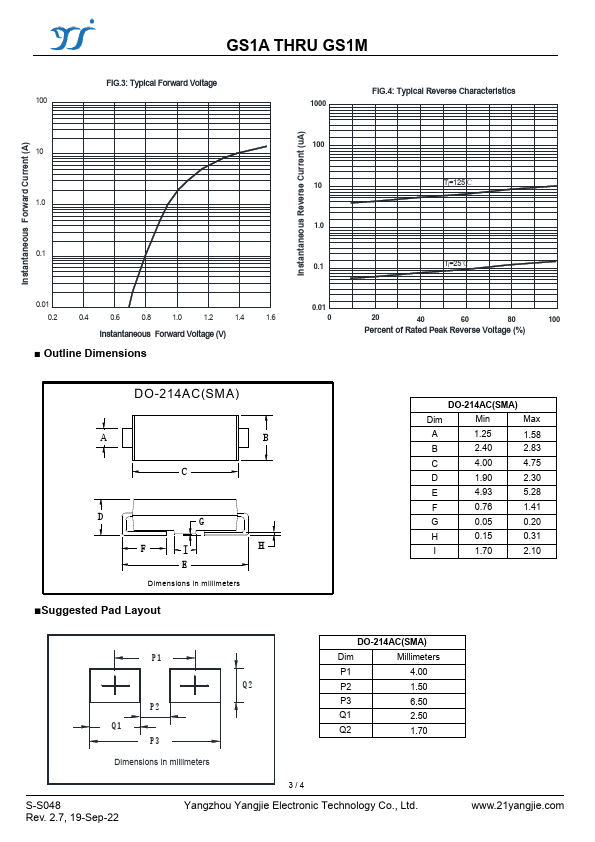 GS1A THRU GS1M Surface Mount General Purpose Rectifier RoHS COMPLIANT .