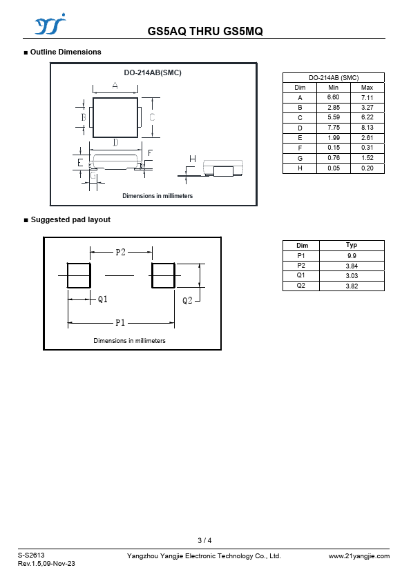 GS5AQ THRU GS5MQ Surface Mount General Purpose Rectifier RoHS COMPLIANT .