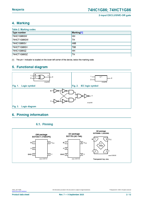 74HC1G86; 74HCT1G86 2-input EXCLUSIVE-OR gate Rev.7 * 9 September 2025 Product data sheet 1.General .74HC1G86 Features