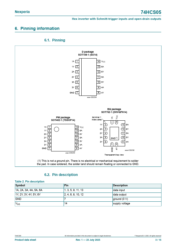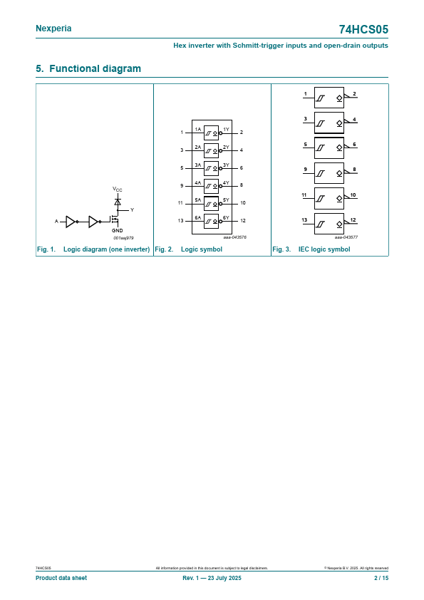 74HCS05 Hex inverter with Schmitt-trigger inputs and open-drain outputs Rev.1 * 23 July 2025 Product data sheet 1.General .74HCS05 Features