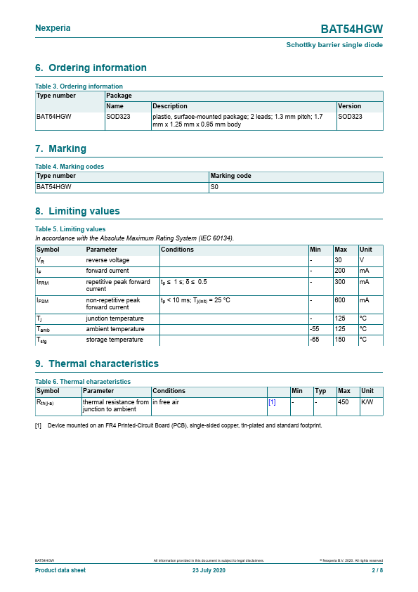 BAT54HGW Schottky barrier single diode 23 July 2020 Product data sheet 1.General .BAT54HGW Features