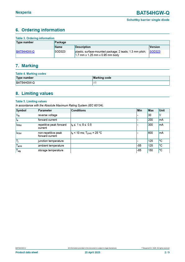 BAT54HGW-Q Schottky barrier single diode 25 April 2025 Product data sheet 1.General .BAT54HGW-Q Features