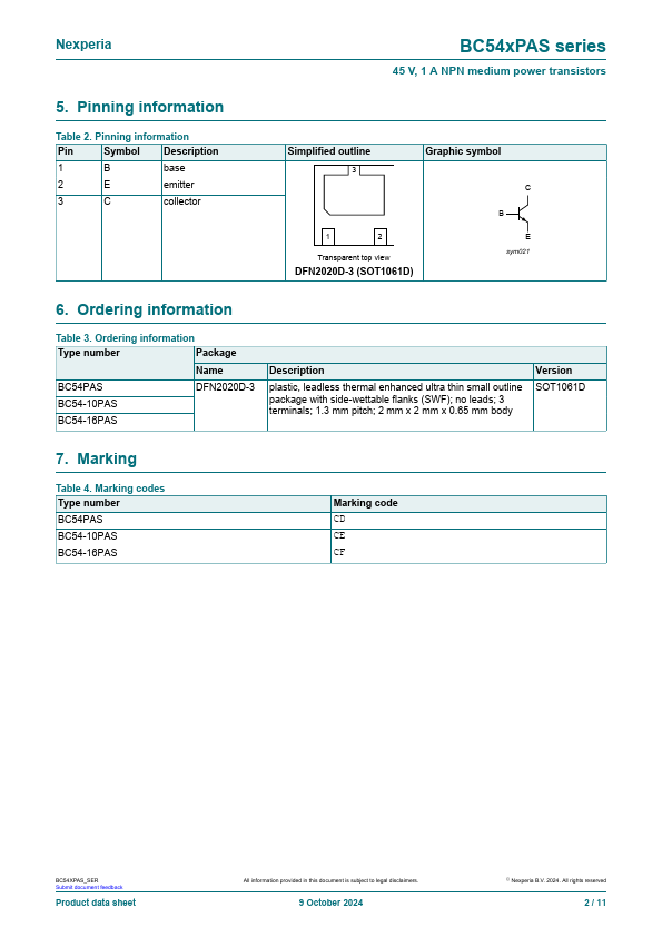 NPN medium power transistor series encapsulated in an ultra thin DFN2020D-3 (SOT1061D) leadless small Surface-Mounted Device (SMD) plastic package with medium power capability and visible and solderable side pads.