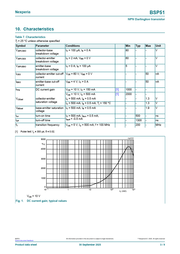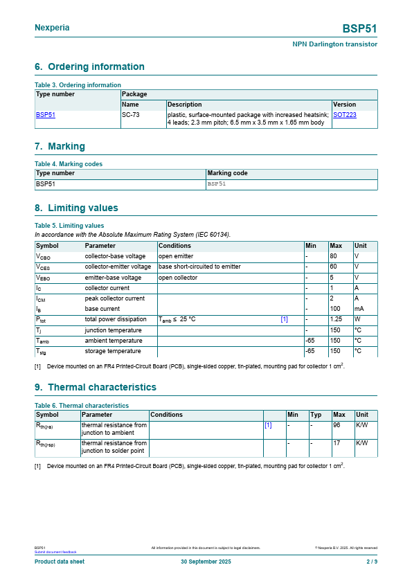BSP51 NPN Darlington transistor 30 September 2025 Product data sheet 1.General .BSP51 Features