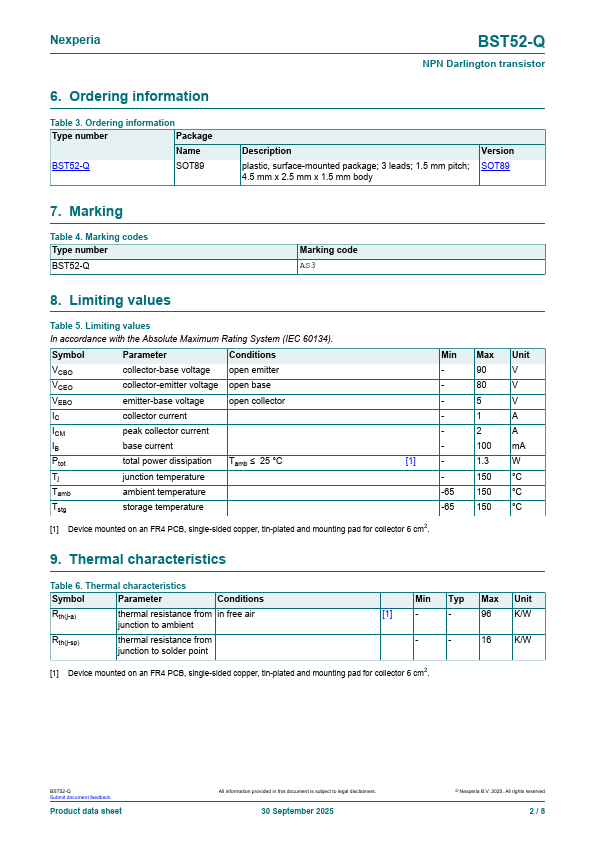 BST52-Q NPN Darlington transistor 30 September 2025 Product data sheet 1.General .BST52-Q Features