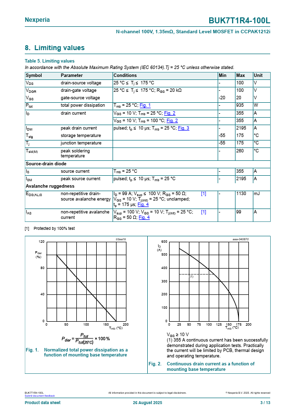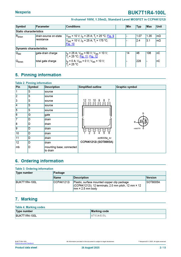 CCPAK1212i BUK7T1R4-100L N-channel 100V, 1.35mΩ, Standard Level MOSFET in CCPAK1212i 26 August 2025 Product data sheet 1.General .BUK7T1R4-100L Features