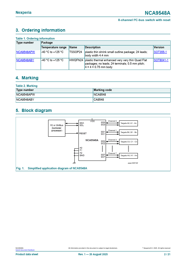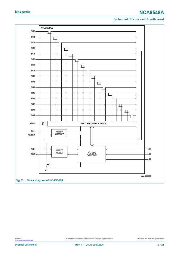 NCA9548A 8-channel I²C-bus switch with reset Rev.1 * 20 August 2025 Product data sheet 1.General .NCA9548A Features