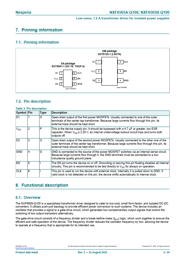 TSOT23-6 NXF6505A-Q100; NXF6505B-Q100 Low-noise, 1.2 A transformer driver for isolated power supplies Rev.2 * 22 August 2025 Product da.NXF6505A-Q100 Features