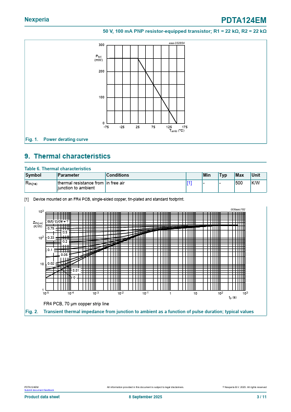 PDTA124EM 50 V, 100 mA PNP resistor-equipped transistor; R1 = 22 kΩ, R2 = 22 kΩ 8 September 2025 Product data sheet 1.General .PDTA124EM Features