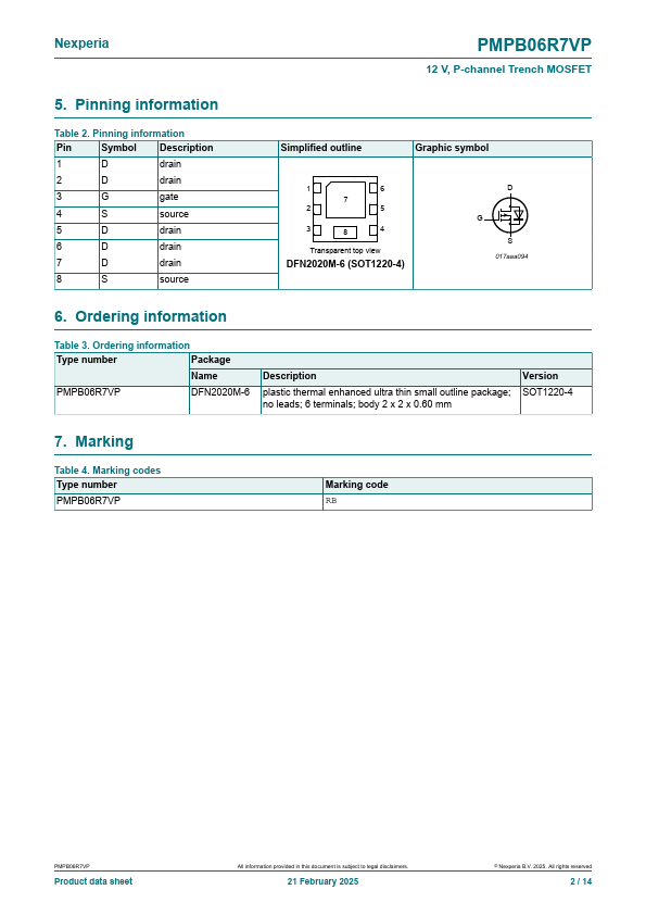 202D0FM-N6 PMPB06R7VP 12 V, P-channel Trench MOSFET 21 February 2025 Product data sheet 1.General .PMPB06R7VP Features