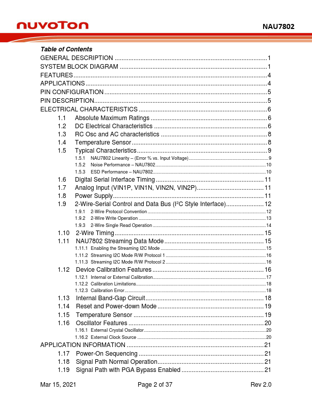 The Nuvoton NAU7802 is a precision low-power 24-bit analog-to-digital converter (ADC), with an onboard low-noise programmable gain amplifier (PGA), onboard RC or Crystal oscillator, and a precision 24-bit sigma-delta (Σ-Δ) analog to digital converter (ADC).