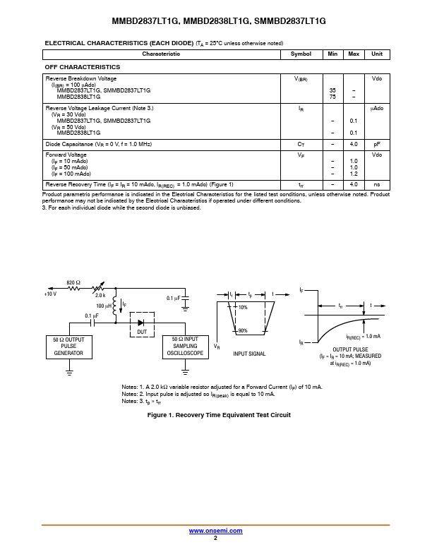 Monolithic Dual Switching Diodes MMBD2837LT1G, MMBD2838LT1G, SMMBD2837LT1G .