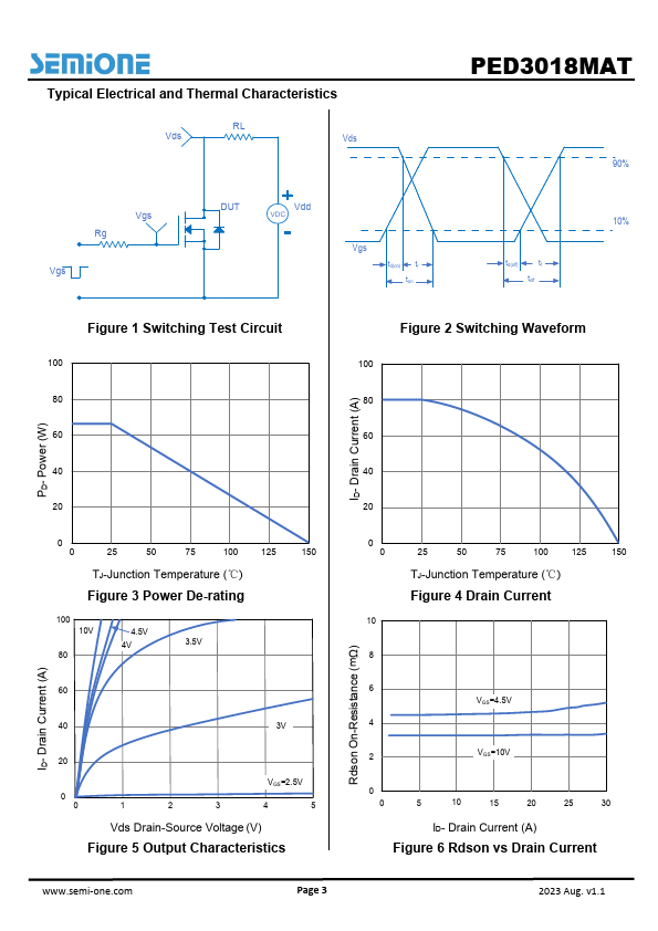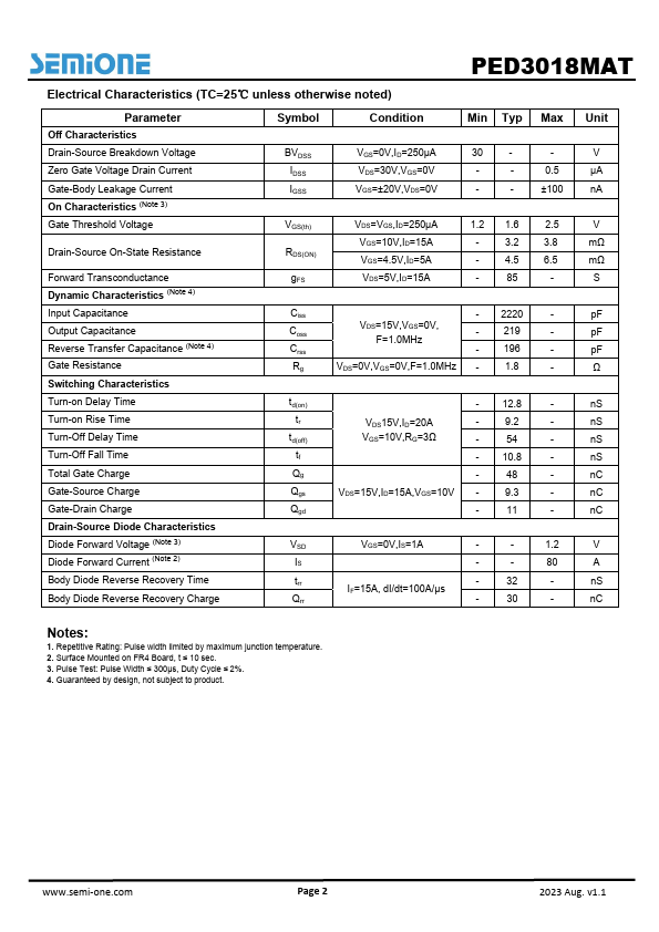 The PED3018MAT by semi one is a N-Channel Enhancement Mode Power MOSFET. Below is the official datasheet preview.