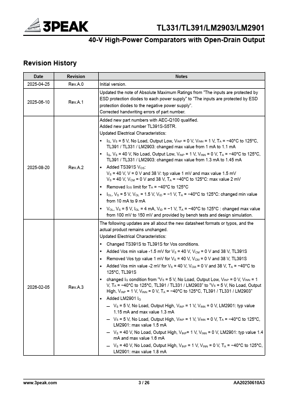 Wide Single-supply Voltage Range or Dual Supplies: +2 V to +40 V or ±1 V to ±20 V Low Supply Current: 460 μA per Channel (Typ) Propagation Delay:.