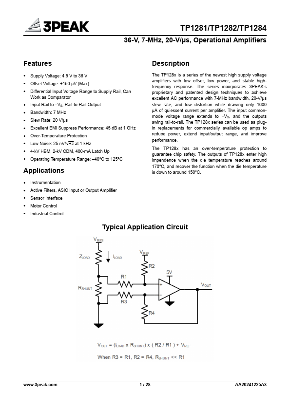 - Low Noise: 25 nV/√Hz at 1 kHz