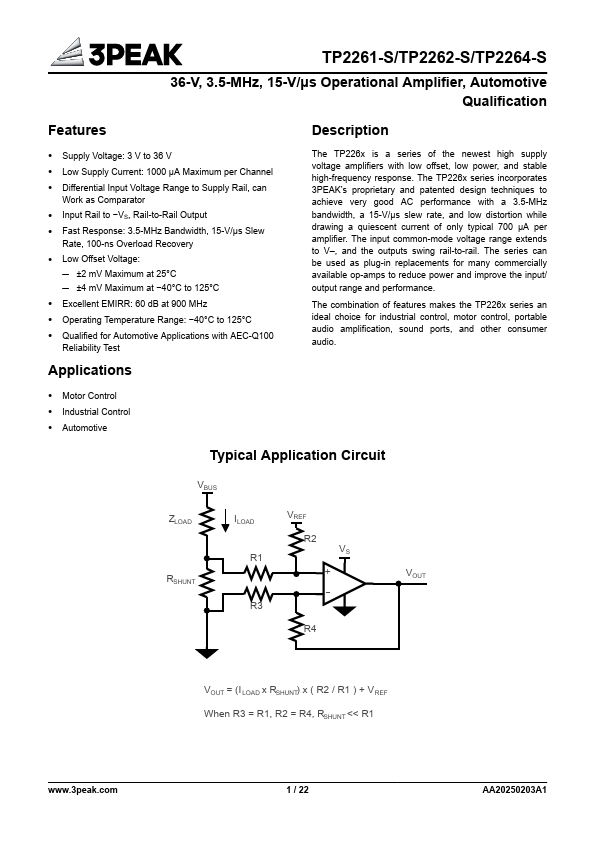 - Supply Voltage: 3 V to 36 V
