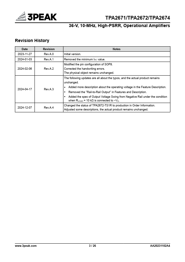 - Offset Voltage: ±3 mV Maximum at 25°C
