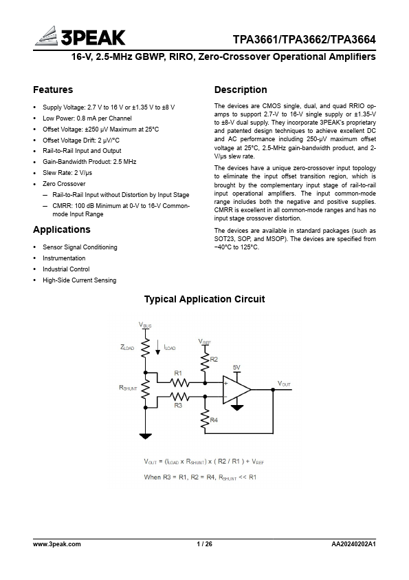 - Offset Voltage Drift: 2 μV/°C