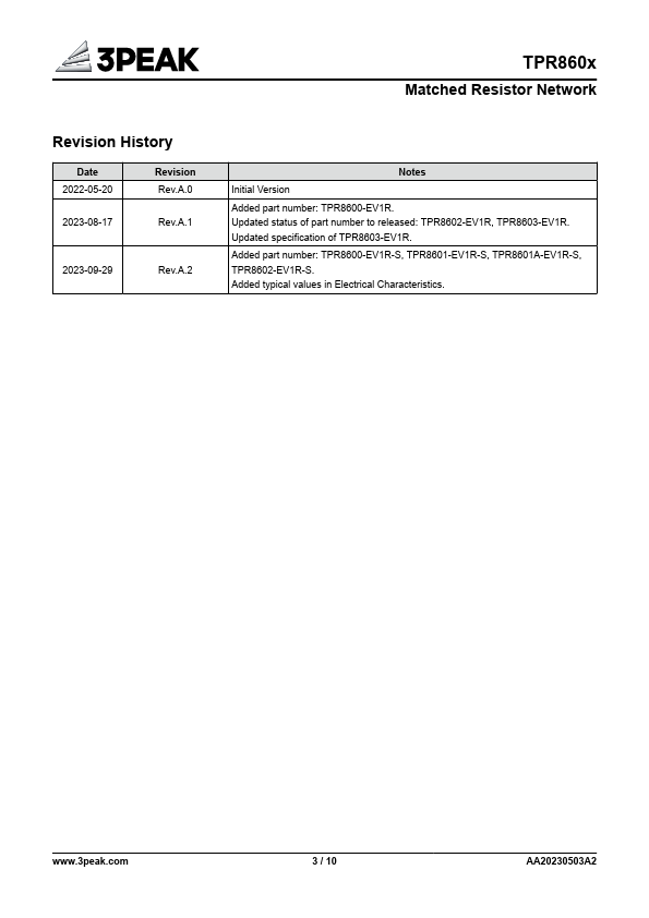 Excellent Matching TPR860xA: 0.01% Matching at −40°C to 125°C TPR8600, TPR8601, TPR8602: 0.025% Matching at −40°C to 125°C TPR8603:.