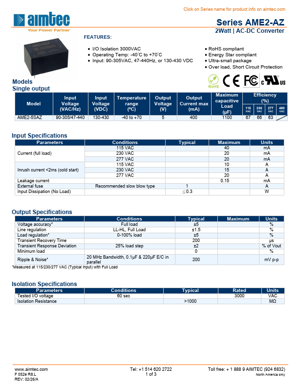 Click on Series name for product info on aimtec.