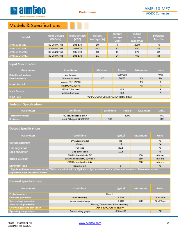 The AMEL10-MEZ is suitable for many applications such as industrial systems, portable equipment, and medical...
