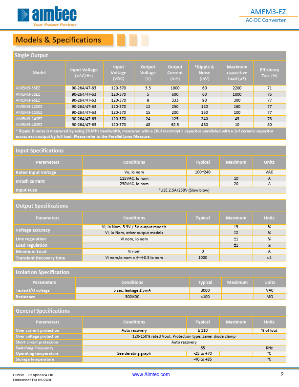 The AMEM3-EZ is suitable for grid power, LED, instrumentation, industrial controls, munication, and...