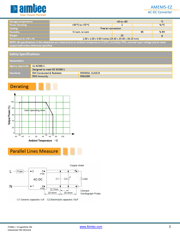 AMEM5-EZ AMEM5-EZ AC-DC Converter Click to ORDER samples Encapsulated AMEM5-EZ series is an efficient 5W AC-DC power supply module. Offering a mercial input voltage range of 90-264VAC, output voltage ranges from 3.3-48V, and safer isolation. This new series offers great operating temperatures, from -25°C to 70°C with full power up to 50°C and Features an isolation of 3000VAC for improved reliability and system safety. Furthermore, an output short circuit protection (OSCP), output over-current protection (OCP) and an output over-voltage protection (OVP) e standard with the series. The AMEM5-EZ is suitable for grid power, LED, instrumentation, industrial controls, munication, and...