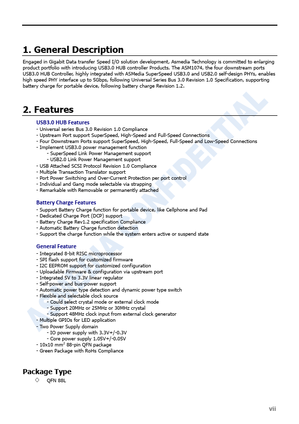 Engaged in Gigabit Data transfer Speed I/O solution development, Asmedia Technology is mitted to enlarging product portfolio with introducing USB3.0 HUB controller Products. The ASM1074, the four downstream ports USB3.0 HUB Controller, highly integrated with ASMedia SuperSpeed USB3.0 and USB2.0 self-design PHYs, enables high speed PHY interface up to 5Gbps, following Universal Series Bus 3.0 Revision 1.0...