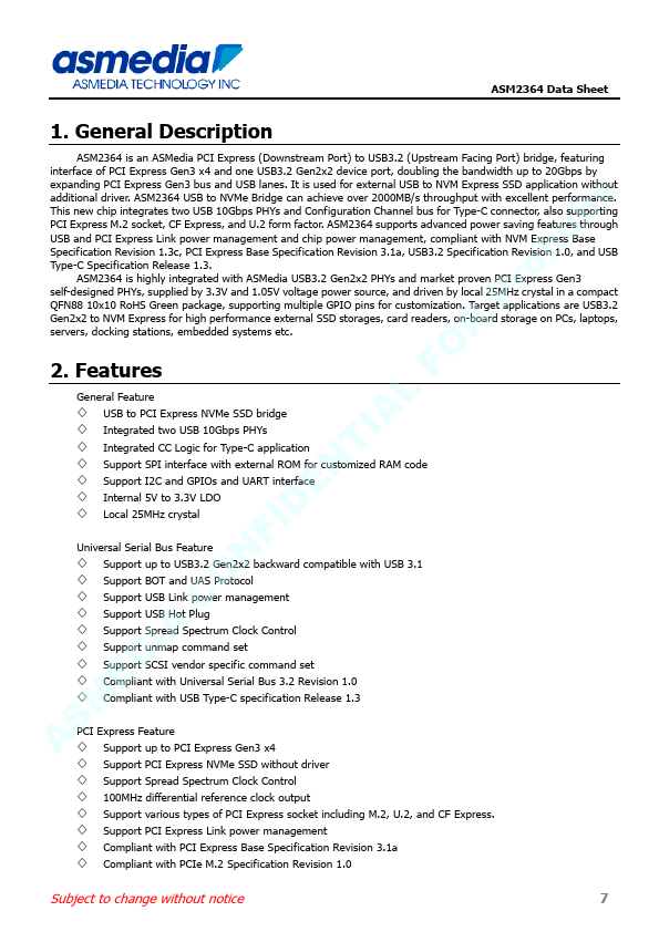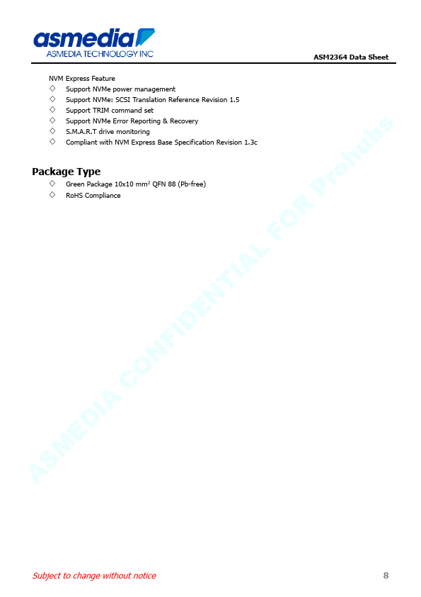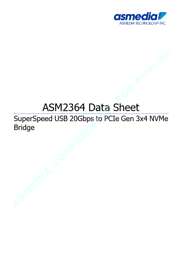 ASM2364 is an ASMedia PCI Express (Downstream Port) to USB3.2 (Upstream Facing Port) bridge, featuring interface of PCI Express Gen3 x4 and one USB3.2 Gen2x2 device port, doubling the bandwidth up to 20Gbps by Prohubs expanding PCI Express Gen3 bus and USB lanes. It is used for external USB to NVM Express SSD application without additional driver. ASM2364 USB to NVMe Bridge can achieve over 2000MB/s throughput with...
