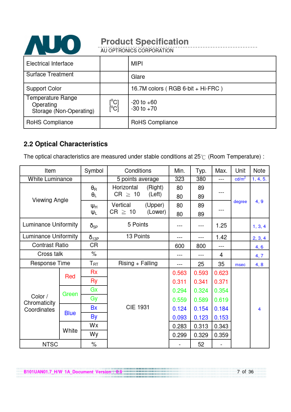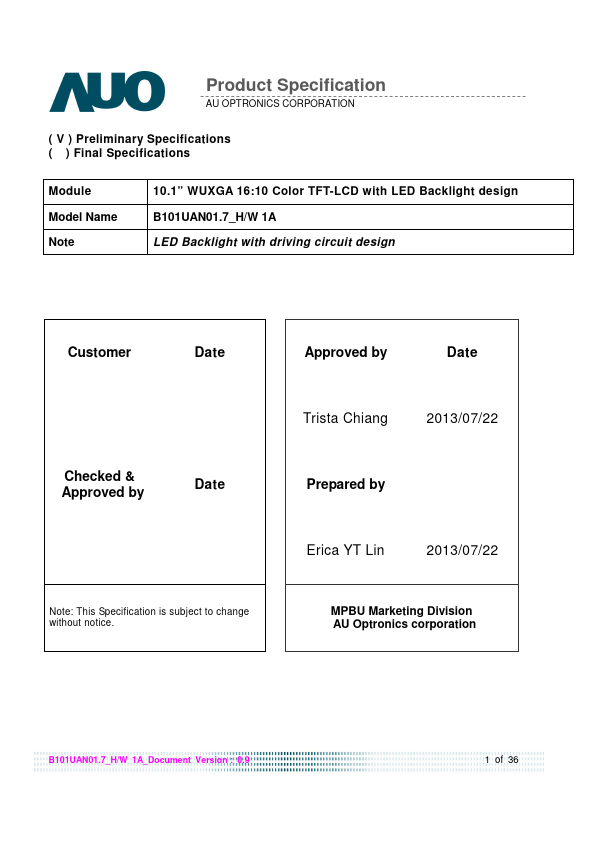 B101UAN01.7 Description