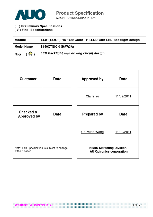 B140XTN02.0 page 2 B140XTN02.0 page 3